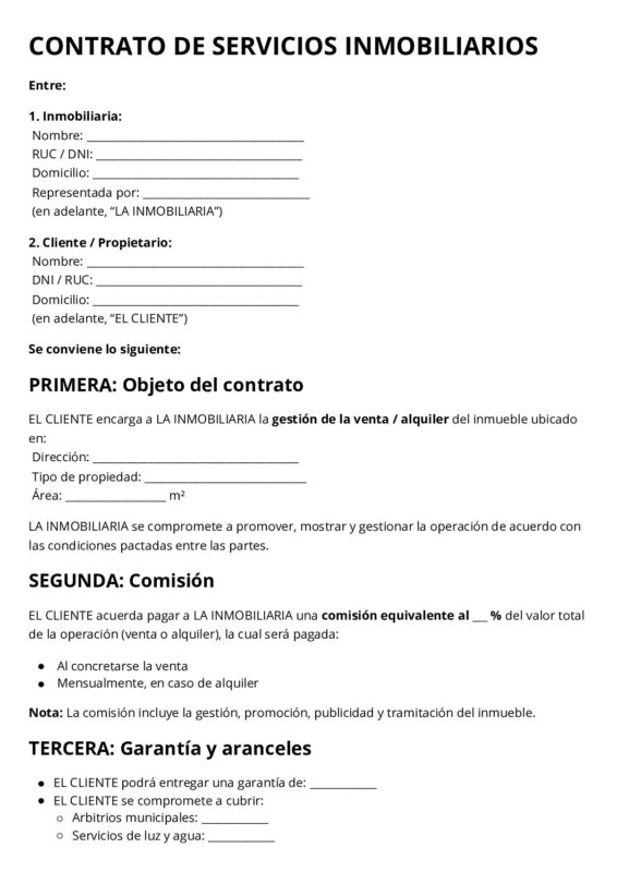 MODELO DE CONTRATO DE SERVICIOS INMOBILIARIOS PDF